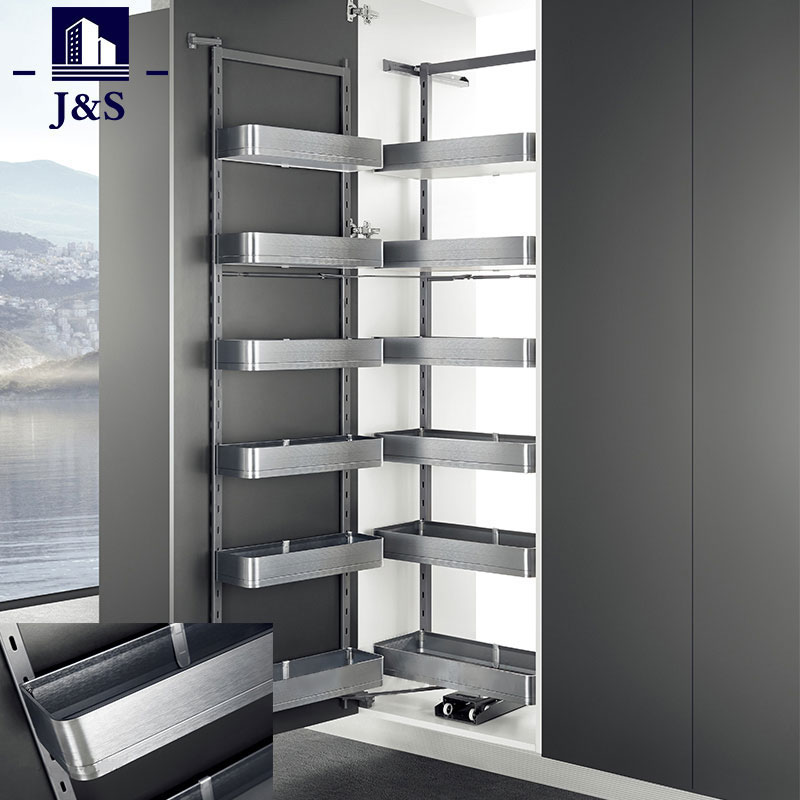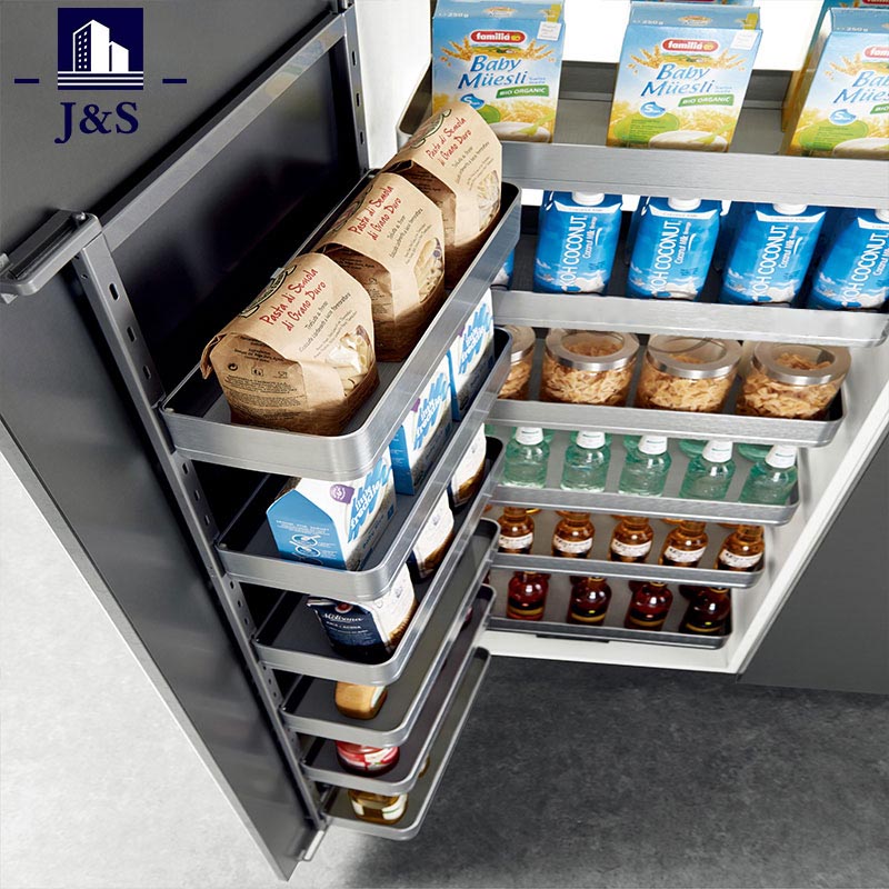 มีตะกร้าแบบดึงหลายสไตล์ Soft-stop Tall Larder Organizer ดึงตะกร้าหน่วย Pantry ซึ่งสามารถแก้ปัญหาการจัดเก็บอุปกรณ์ในครัวได้มากมาย สะดวกสำหรับเราในการหยิบภาชนะใส่อาหาร และยังช่วยให้จัดเรียงและวางภาชนะได้อย่างง่ายดาย
