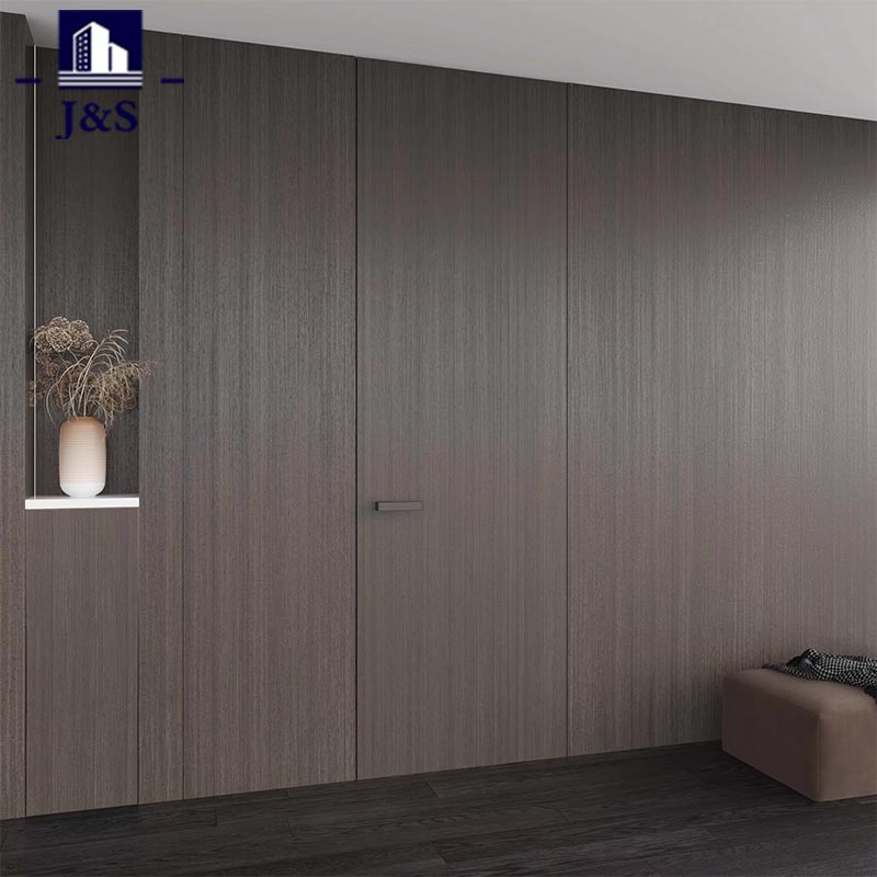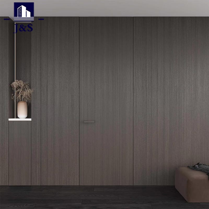 ชุดประตูซ่อนแบบกำหนดเองทั้งบ้านชุดนี้นำเสนอการออกแบบระดับพรีเมียมแบบกำหนดเองทั้งบ้าน โดยผสมผสานเข้ากับพื้นที่อยู่อาศัยสมัยใหม่ได้อย่างลงตัว ประตูตกแต่งด้วยลายไม้สีเข้มที่ดูซับซ้อนซึ่งเข้ากันได้อย่างลงตัวกับพื้นสีเข้มและการเน้นผนังแบบมินิมอลลิสต์ ยกระดับความสวยงามโดยรวมด้วยความหรูหรา จุดเด่นอยู่ที่ฮาร์ดแวร์อันประณีต: มือจับประตูทรงเรขาคณิตที่ทันสมัยมีพื้นผิวสีดำด้านพร้อมรายละเอียดที่แม่นยำ ให้การจับที่สะดวกสบายและสัมผัสของความหรูหราทางอุตสาหกรรม ในขณะเดียวกัน บานพับแบบซ่อนสำหรับงานหนักช่วยให้การทำงานราบรื่นเป็นพิเศษในขณะที่ยังคงปกปิดได้อย่างสมบูรณ์ ซึ่งรวบรวมทั้งความทนทานและความเฉลียวฉลาดแบบเรียบง่าย ออกแบบมาสำหรับเจ้าของบ้านรุ่นเยาว์ที่แสวงหาการผสมผสานระหว่างสไตล์และฟังก์ชันการทำงาน การออกแบบนี้ช่วยลดกรอบประตูที่กีดขวาง ทำให้เกิดสภาพแวดล้อมที่เปิดกว้างและไม่เกะกะ เป็นตัวเลือกที่ดีที่สุดสำหรับอพาร์ทเมนท์สมัยใหม่ ผสมผสานการผสมผสานภาพที่ไร้รอยต่อเข้ากับงานฝีมือคุณภาพสูงเพื่อสร้างนิยามใหม่ของการใช้ชีวิตร่วมสมัย